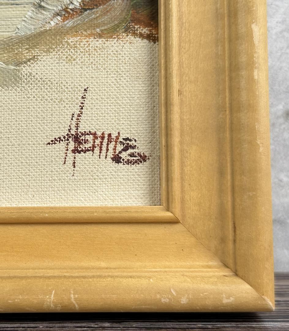 Title is Alaskan Landscape. 8" by 10" unframed. 9 1/2" by 11 1/2" framed. Ellen Henne Goodale (1915 - 1991) was active/lived in Alaska. Ellen Goodale is known for Dog team genre, animal, landscape and portrait painting. Ellen Henne Goodale 1915 - 1991. Born in Seattle, Washington, she studied art at the Pittsburgh Art Institute, the Butler Institute in Youngstown, Ohio, and under artists Eliot O'Harra and Hana Meyercastle. She returned to Seattle and went to work as a designer in a neon sign shop where she met her husband artist Harvey B. Goodale. For awhile they lived in San Francisco and Reno, Nevada. In 1943 the couple moved to Alaska. After brief stays in Ketchikan, Juneau and Haines, the couple settled in Anchorage. After a short stay in Copper Center, they settled near Upper Fire Lake in Chugiak. For a time Mrs Goodale showed her work at the famous Nugget Shop Gallery in Jeneau along with fellow Alaskan artist Sydney Laurence. Ellen Henne Goodale, who usually signed her work "Henne" is best known for her dog-team pictures and portraits of Native Alaskan's. Ellen Henne Goodale died May 20, 1991 in Anchorage.
