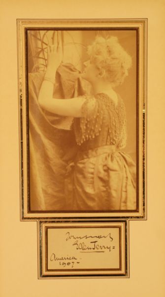 Dame Ellen Terry, GBE was an English stage actress who became the leading Shakespearean actress in Britain. Signature dated in 1907, matted with photo.