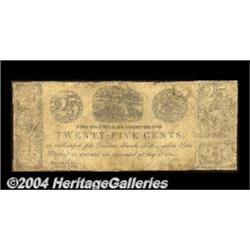 Ellicotts Mills, MD- J.K. Swaine 12 1/2ó, 25ó Nov. 25, 1839 Shank 43.3.2, 43.3.3A pair of exceedingly scarce pieces of scrip, the first grading Very Good-Fine, the latter Very Good with a few repairs. 2 notes <BR><BR><B>Important notice:</B> Heritage usually auctions material at the rate of 200-250 lots per hour. On some occasions eBay Live bid software or the Internet may not be able to keep up with the pace of the auction. We recommend placing a realistic absentee bid now as insurance to avoid disappointment. Occasionally the auctioneer may eliminate or reject an eBay Live bid, and the auctioneer may also reopen a lot after the close of the eBay live bidding (usually because we missed an audience bid), and may reject your bid even if it shows you as the winning bidder. By bidding via eBay Live, you agree that Heritage may award the lot to another bidder at its sole discretion under the circumstances described above or any other reasonable circumstances. Since eBay bids are not shown to us until we open the lot on the floor, we treat those bids just like floor bids. In most cases the floor responds before the eBay bid is presented to us, due to Internet lag time, so for consistency we have made it a policy that floor bids are always considered first over tie eBay live bids. Also please note that all Heritage lots purchased through eBay Live carry a 20% Buyer's Premium. Please make sure you read the Terms and Conditions before you bid. <BR><BR><B>IMPORTANT ANNOUNCEMENT ABOUT RESERVES:</B> Heritage now divulges all reserves on its web site 7 days before every auction. If you want to know whether the reserve on this lot has been met, and if not, what the reserve amount is, please visit this lot page on the HeritageCoin.com web site, or email: bid@HeritageGalleries.com