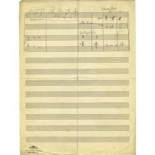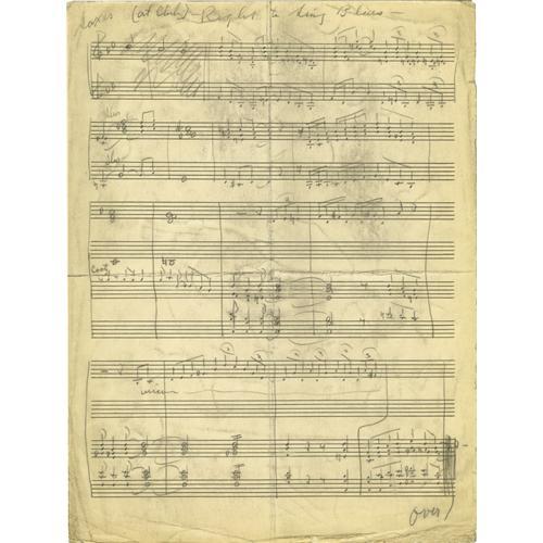 <B>Duke Ellington "Got A Right To Sing The Blues" Handwritten Score.</B></I> This jazz and blues standard, originally composed by Harold Arlen in 1932, features Duke Ellington's notes for passages to be played by his band members Harry Carney (baritone saxophone), Lawrence Brown (trombone), and Cooty Williams (trumpet). Charles "Cootie" Williams spelled his nickname variously as "Cooty" and "Cootie." This chart is written on both the front and back of one piece of score paper. Most of Duke Ellington's scores are housed in the Smithsonian Institution in Washington D.C., but here's an opportunity for an Ellington aficionado to win an original chart, one of the last to be offered to the public. <I>Accompanied by a letter of authenticity from Ellington archivist J. Bradley Shigeta.</B></I><BR><BR><b>Shipping:</b> Flat Material, Small (<a target="_blank" href="http://www.heritageauctions.com/common/shipping.php">view shipping information</a>)