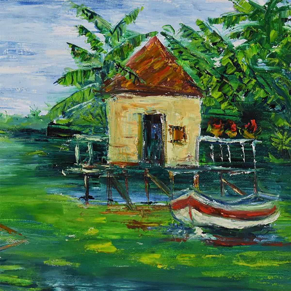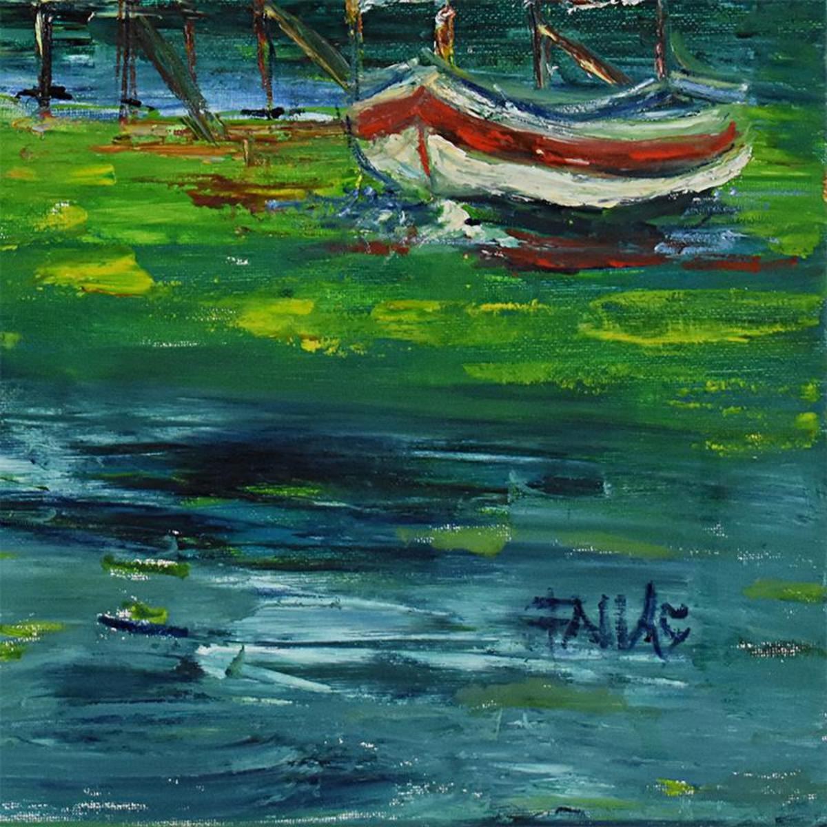 Elliot Fallas, "Dock Side" Original Oil Painting on Canvas, Hand Signed with Letter of Authenticity.