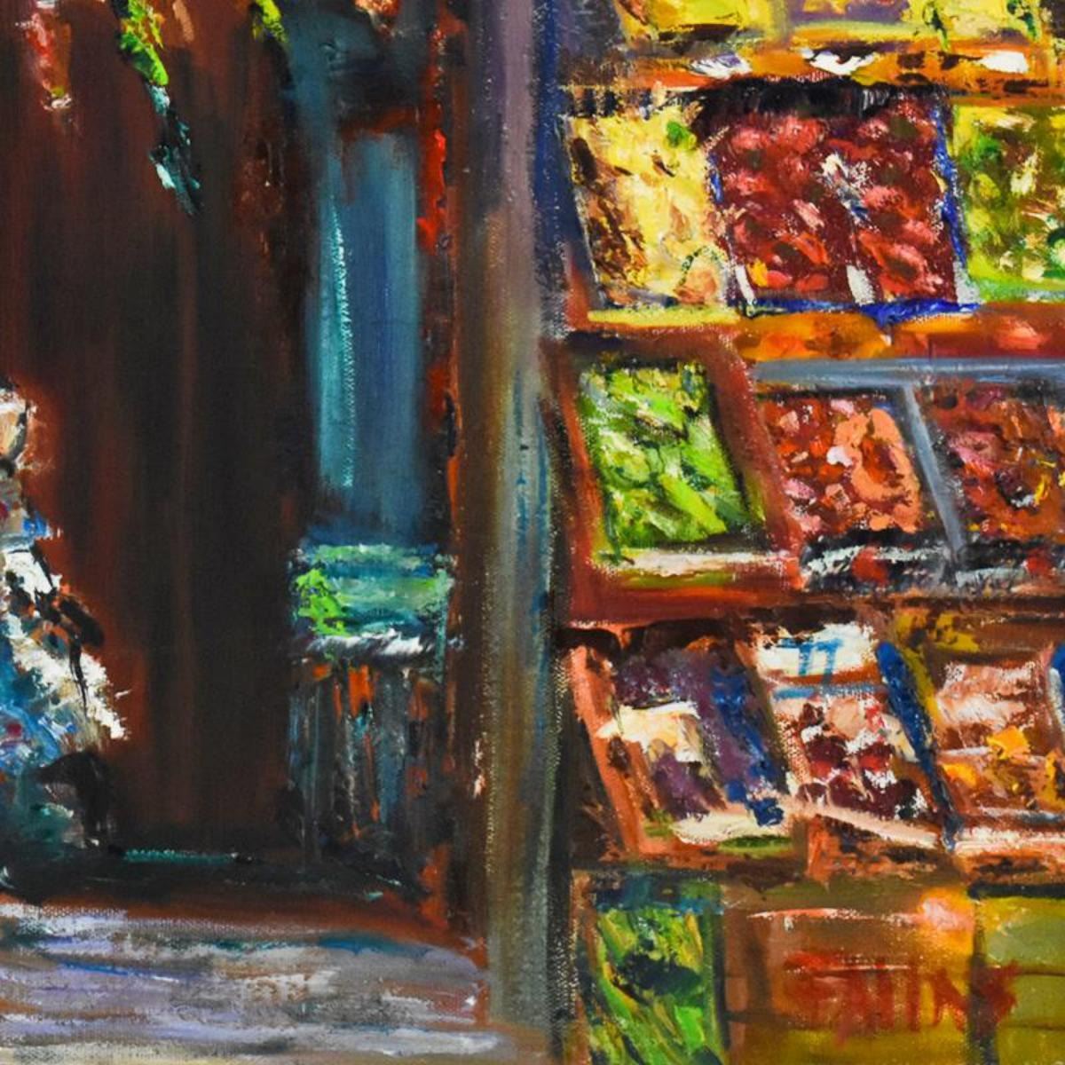Elliot Fallas, "Italian Market" Original Oil Painting on Canvas, Hand Signed with Letter of Authenti