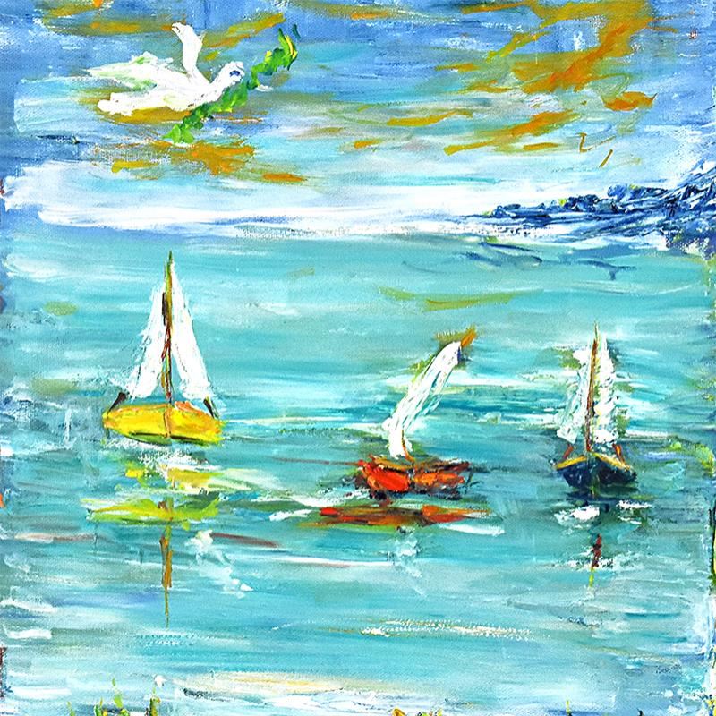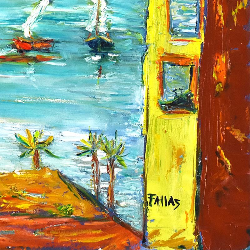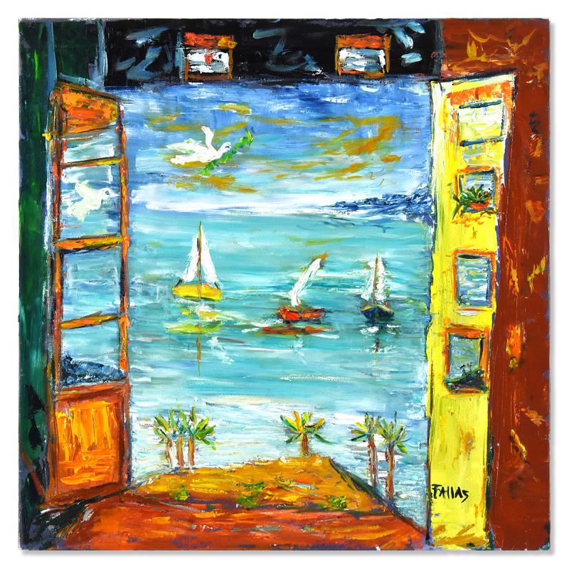 "Ode to Matisse" is an original oil painting on stretched canvas by Elliot Fallas, hand signed by the artist. Includes Letter of Authenticity. Measures approx. 21" x 21" (image).