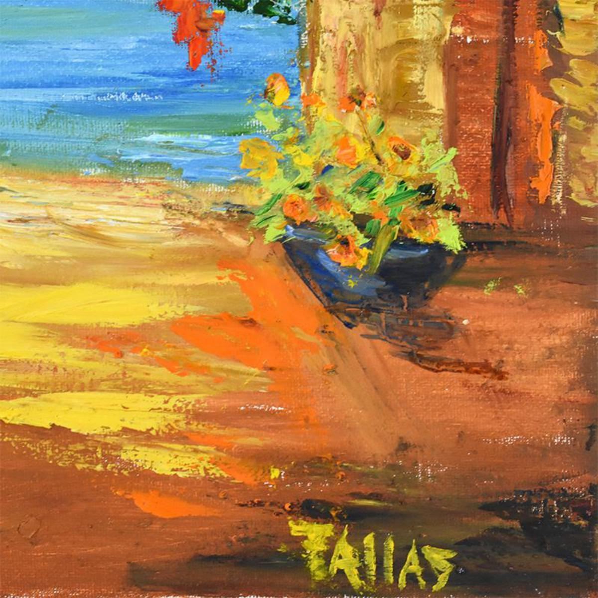 "On the Terrace" is an original oil painting on stretched canvas by Elliot Fallas, hand signed by the artist. Includes Letter of Authenticity. Measures approx. 20" x 16" (image). The sides of the canvas are painted and it can be hung as is, but a frame is definitely recommended. Reference #: 249946