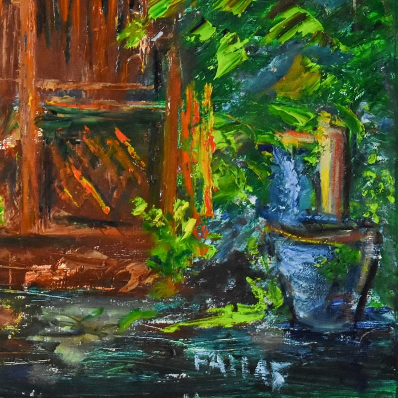 Elliot Fallas, "Zen Garden" Original Oil Painting on Canvas, Hand Signed with Letter of Authenticity. "Zen Garden" is an original oil painting on stretched canvas by Elliot Fallas, hand signed by the artist. Includes Letter of Authenticity. Measures approx. 20" x 16" (image).