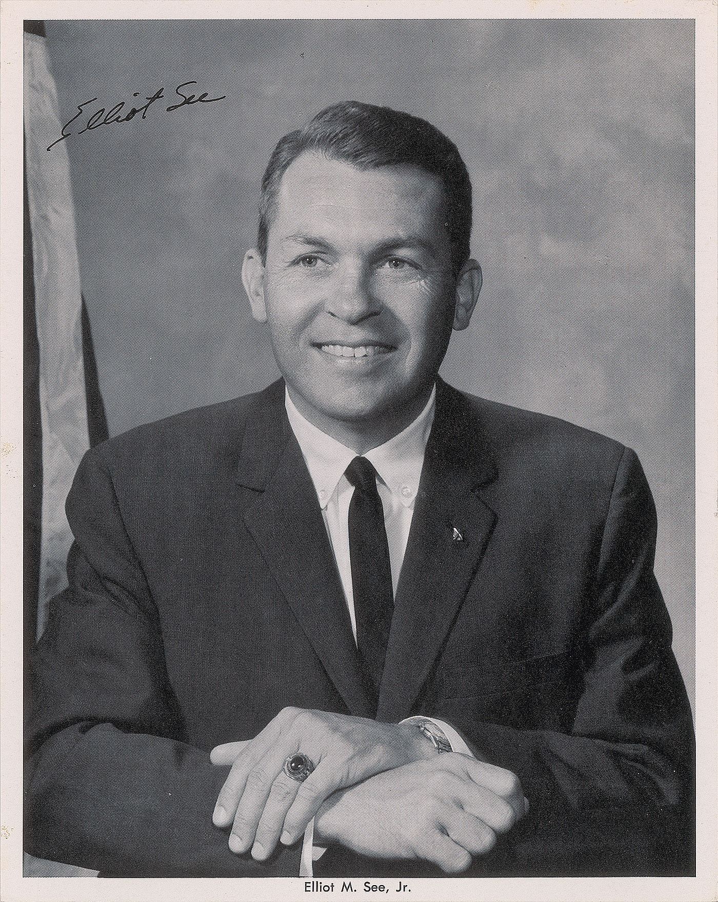 Astronaut and would-be commander of Gemini 9 (1927-1966) who perished in a plane crash before the historic voyage. Uncommon official 8 x 10 NASA lithograph of See wearing a suit and tie, signed in black felt tip. In fine condition.