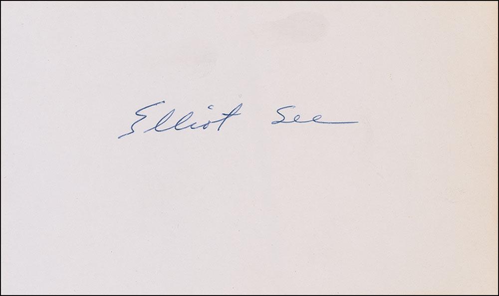 Astronaut (1927-1966), the would-be commander of Gemini 9 who perished in a plane crash before the historic voyage. Vintage ballpoint signature, “Elliot See,” on an off-white 5 x 3 card. In very fine condition.
