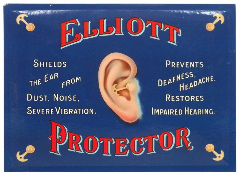 Elliott Ear Protector sign, made of "Crystaloid" & mfgd by The Whitehead & Hoag Co., VG/Exc cond, 7.