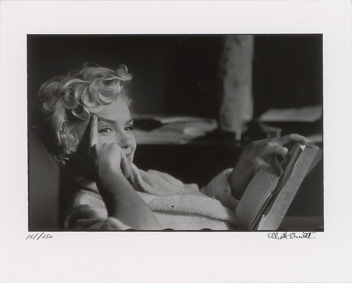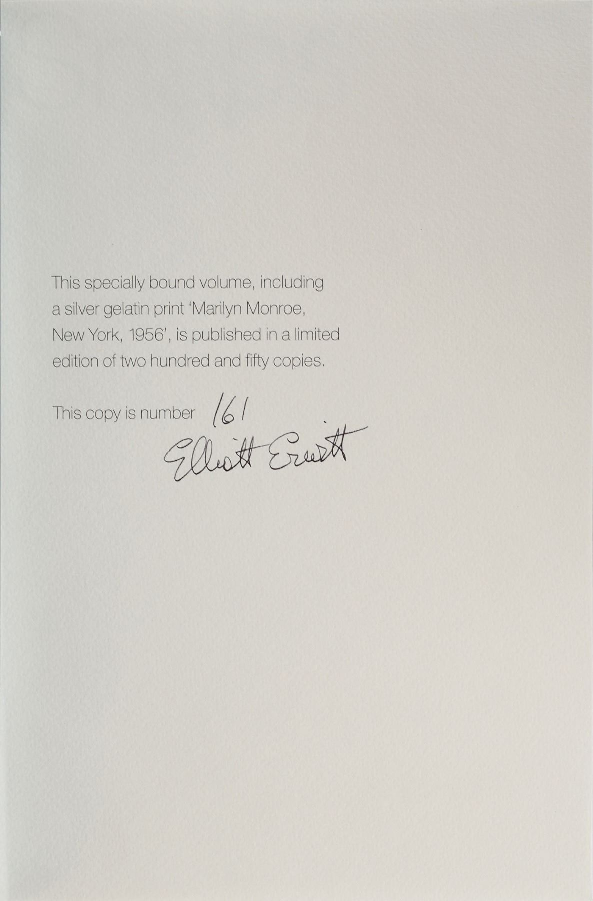 Signed book: Elliott Erwitt: Snaps. Limited edition, numbered 161/250. NY: Phaidon Press, 2001. Clothbound hardcover with clamshell box, 9.5 x 12.5, 543 pages. Signed on the colophon in black ink by Erwitt. Includes a gorgeous semi-glossy 10 x 8 silver gelatin photo of Marilyn Monroe smiling and looking up from a book, signed in the lower right in black ink by Erwitt. In very fine condition.