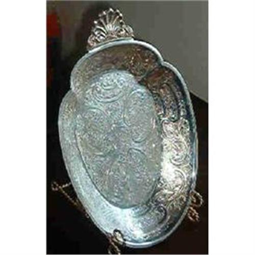 To pass around bon bons or candy. The mark first used in 1912. Heavily chased. First Quality Silver Plate. 10" long without the handle. 7" wide at its widest point. Beautiful!