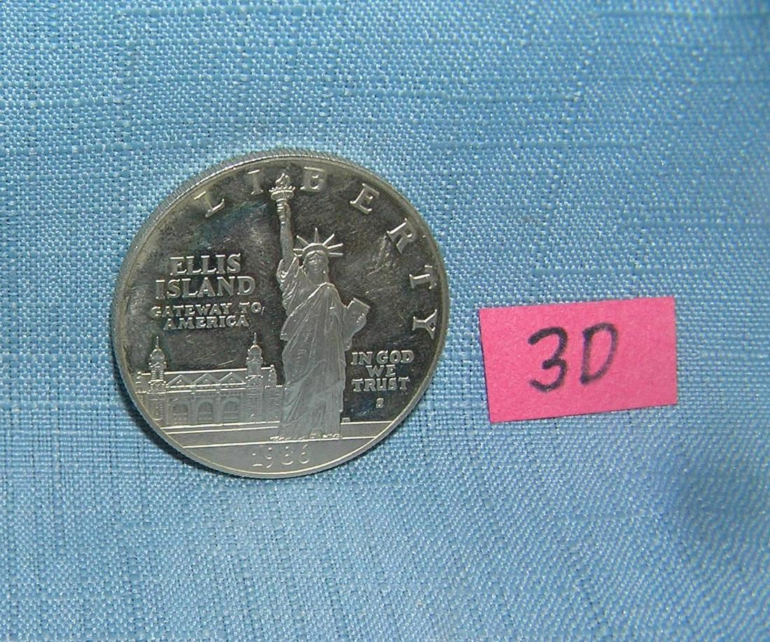 Ellis Island Gateway to America 1 troy oz silver commemorative coin pictures the Statue of Liberty est. value $40.00-$50.00