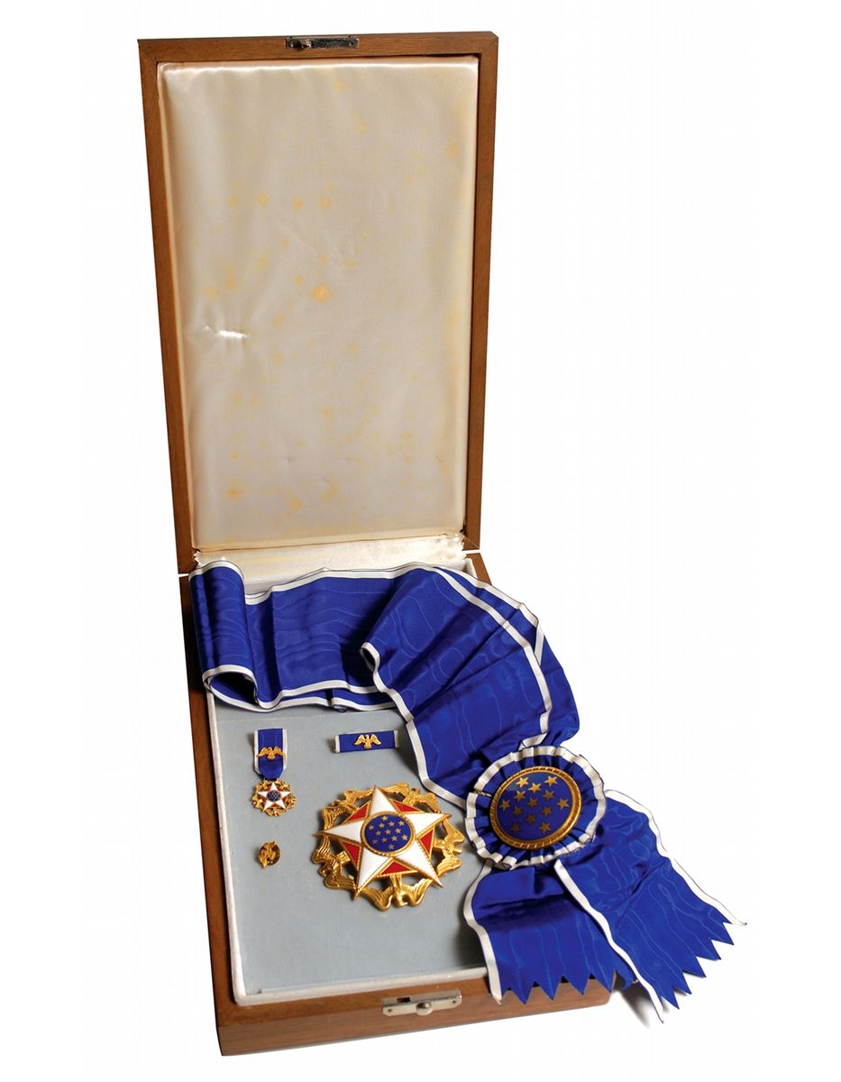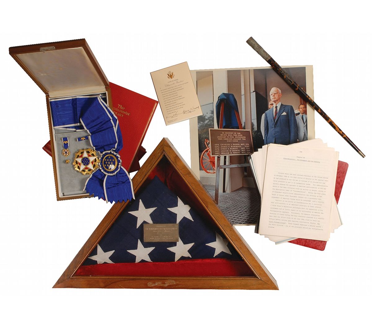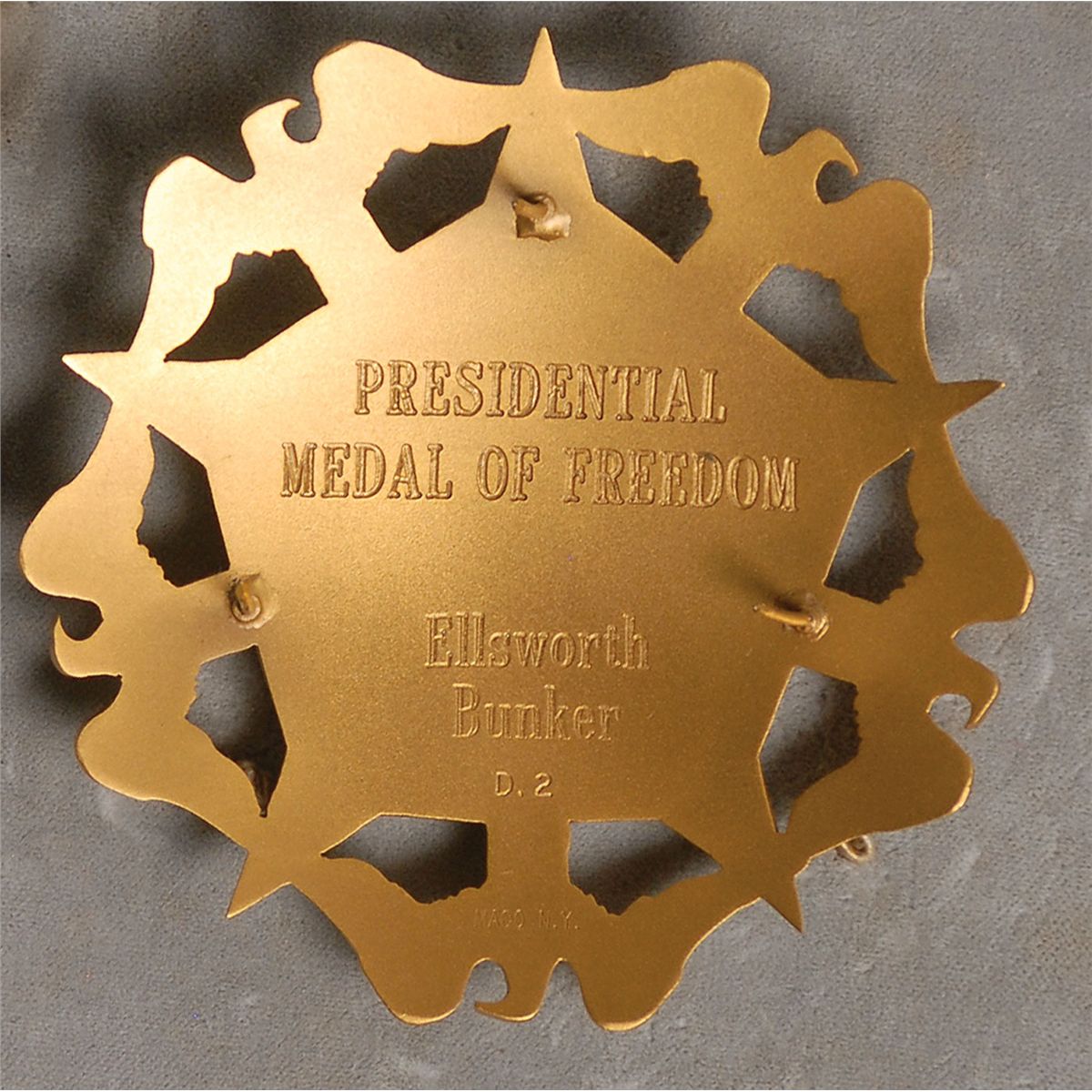 Ellsworth Bunker (1894–1984), who served the US in various capacities under seven presidents, was without a doubt one of the most important American diplomats of the 20th century. His highly regarded skill as a worldwide troubleshooter landed him in the middle of some of the most politically complex situations of our time—most notably as ambassador to wartime South Vietnam, from 1967 to 1973. Bunker made other significant contributions as ambassador to India under Eisenhower, and in drawing up the Panama Canal treaties under Carter. For these efforts, he was twice awarded the Presidential Medal of Freedom with Distinction—one of which is included in this collection. Other significant items in the sale of the Bunker Archive are a pen used to sign the Paris Peace Accords, the flag flown over the United States Embassy in Saigon on the day the cease fire took effect, drafts of Bunker’s unpublished autobiography, presidential signed photos, and an extensive assortment of medals, awards, and private papers. All items seen below are included in the single-lot sale of the Bunker Archive, and are arranged chronologically.