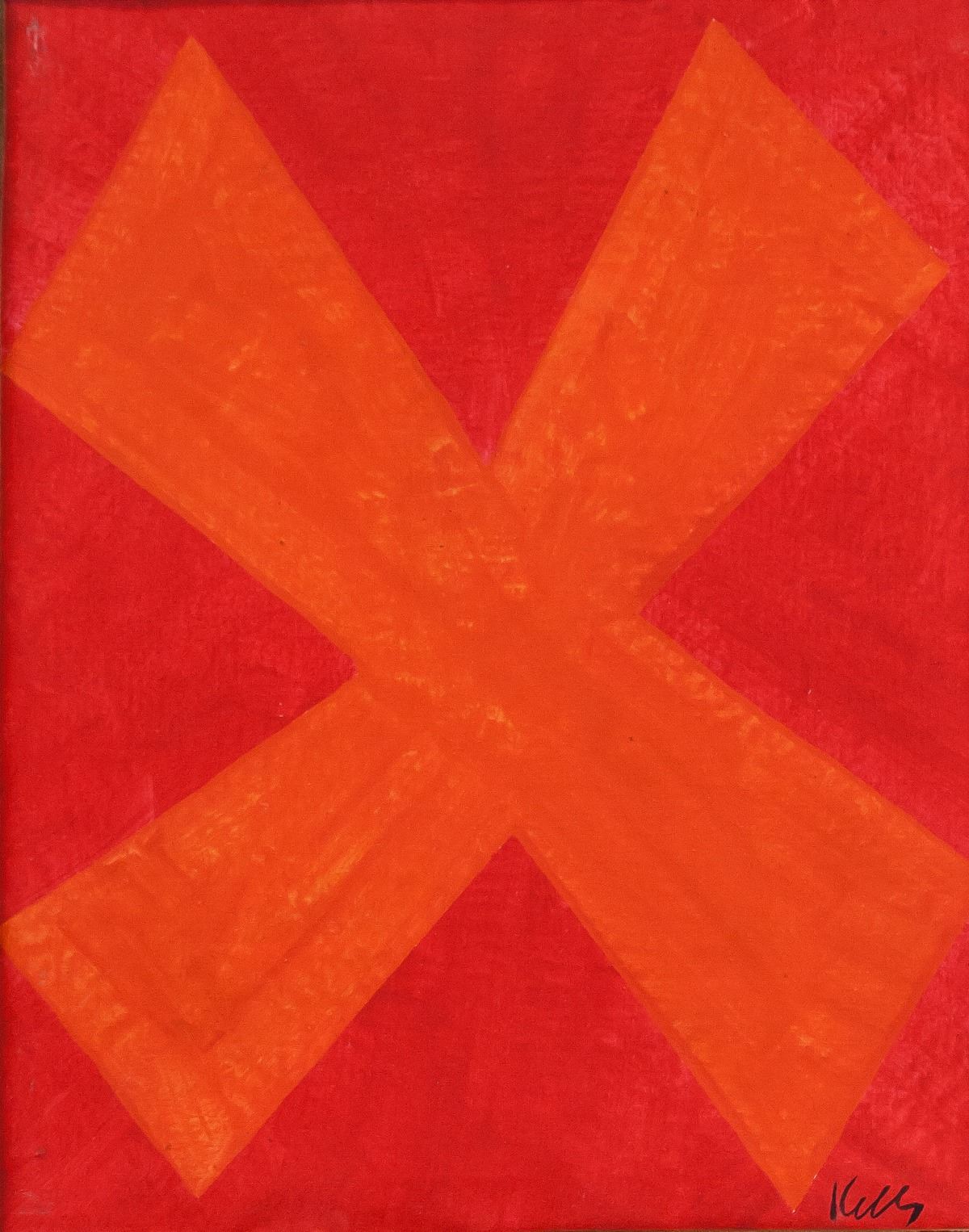 Oil on canvas, framed. Featuring a large X in abstract expressionist composition. Signed Kelly on the lower right corner. Attributed to Ellsworth Kelly (1923-2015, American). 49 x 39 cm (19.3 x 15.4 inches). Framed size: 51 x 41 cm (20.1 x 16.1 inches). PROVENANCE: Southern Ontario estate