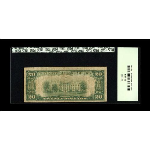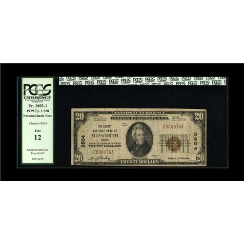 <B>Ellsworth, ME</B></I> - $20 1929 Ty. 1 <B>The Liberty NB</B></I> Ch. # 3804<BR>Frank J. Dunleavy relieved E.F. Small as cashier, while Alfred B. Crabtree's signature as president appears on both 1902 and 1929 notes from this bank. <B>PCGS Fine 12.</B></I>