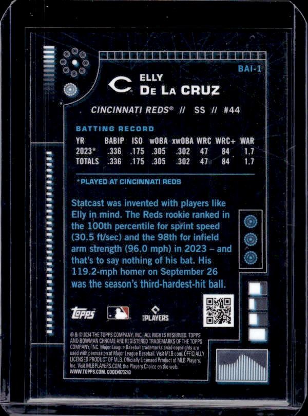 Elly De La Cruz AI Refractor Rookie Card 2024 Bowman Chrome #BAI-1