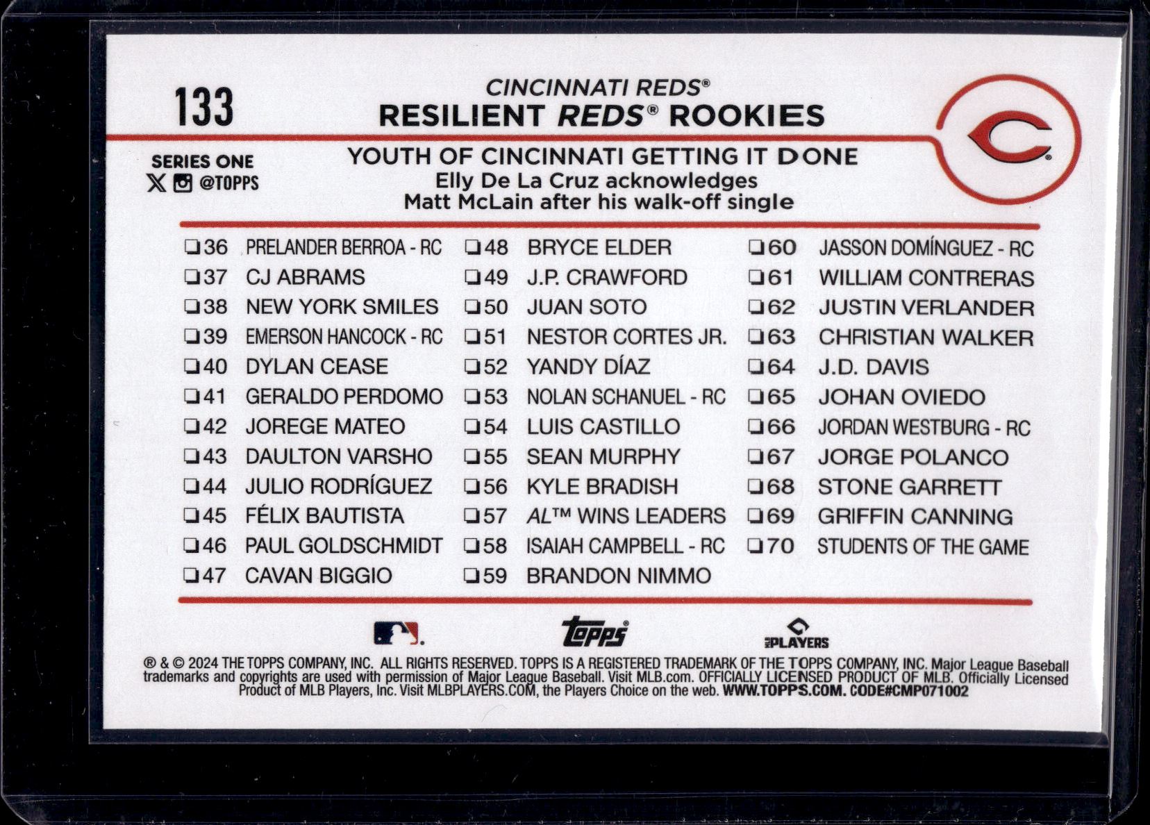 Elly De La Cruz Resilient Reds Rookies 2024 Topps #133