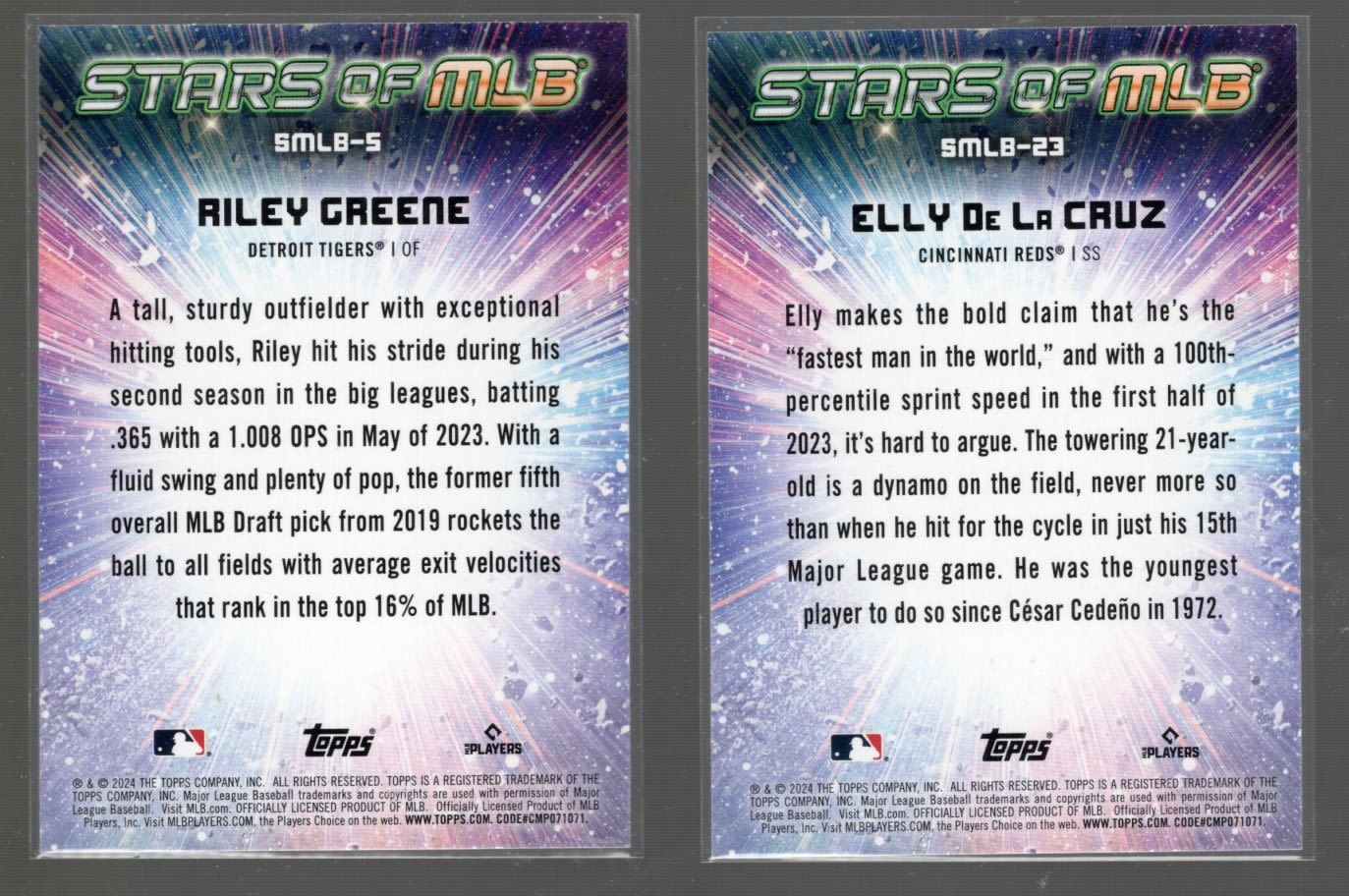 Elly De La Cruz Rookie Card and Riley Greene Stars of MLB 2024 Topps