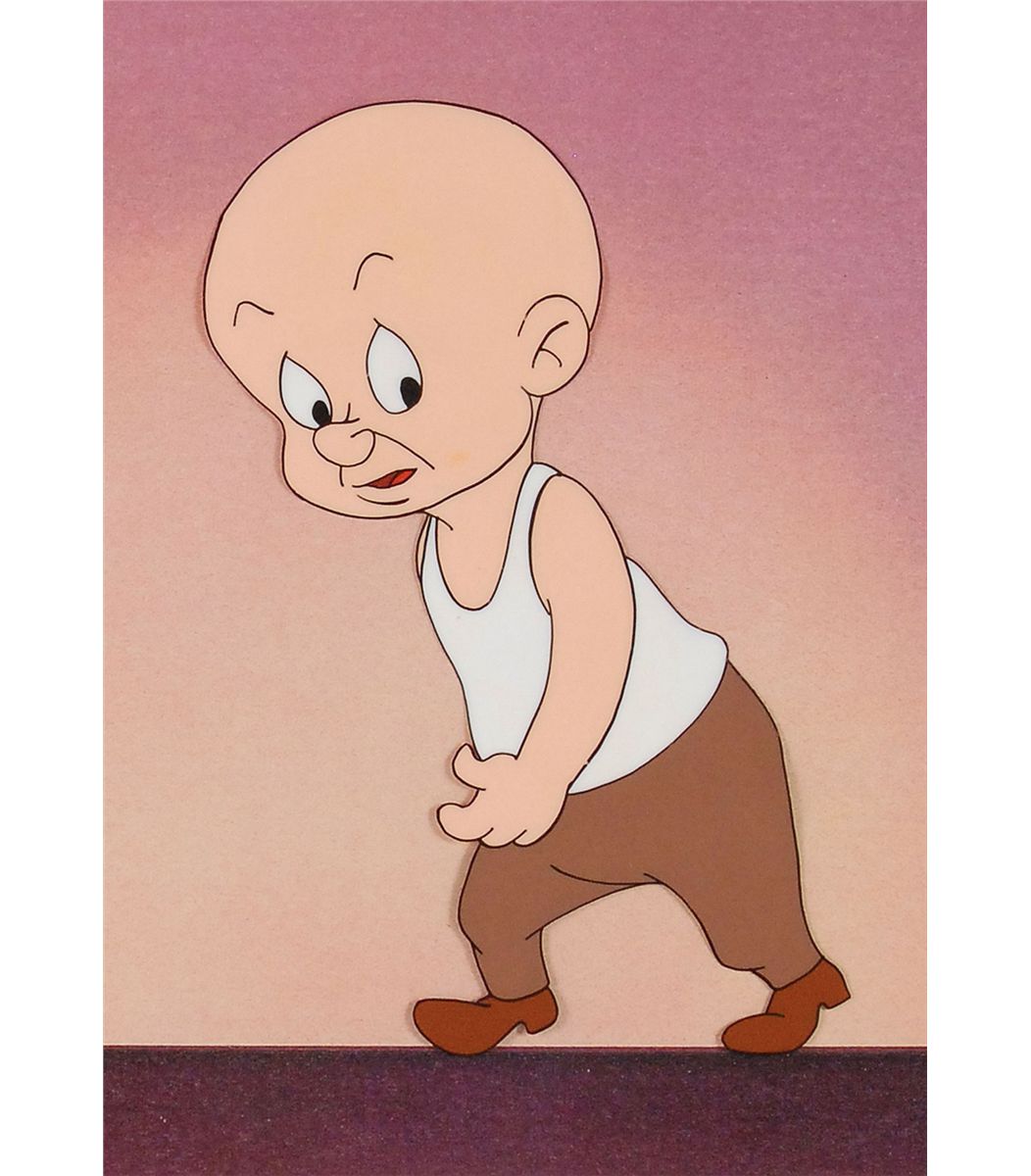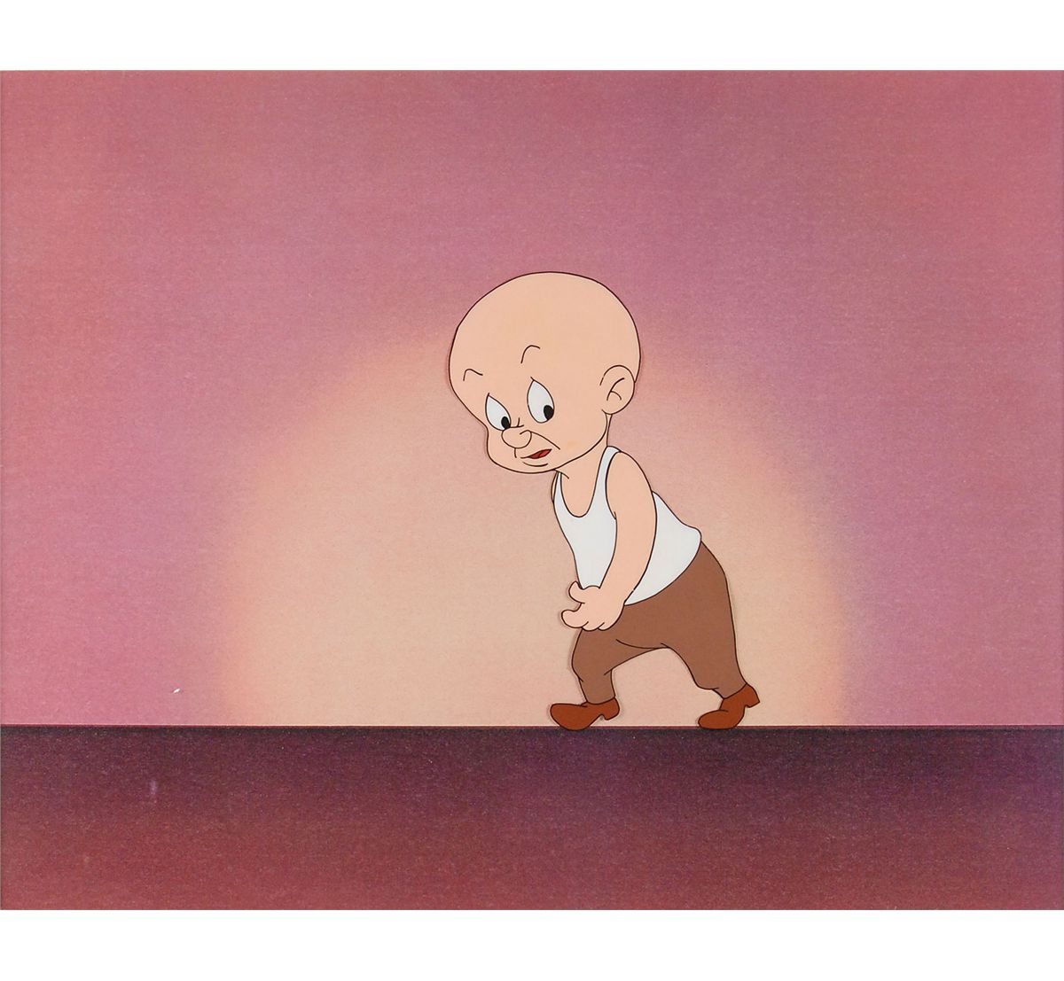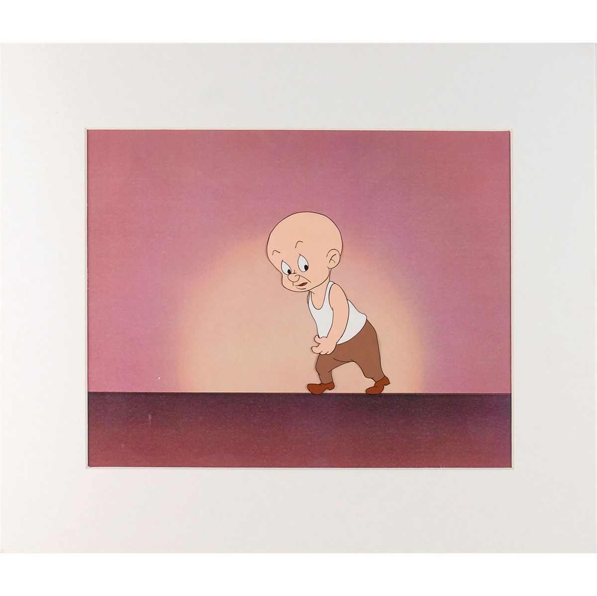 (Warner Brothers Studios, Early 1960s) Original production cel featuring Elmer Fudd from Early 1960s. The cel is placed on a color copy background. Image measures 3.5 x 5, with a mat opening of 12 x 9.5, and an overall size of 17 x 14.5. In fine condition.