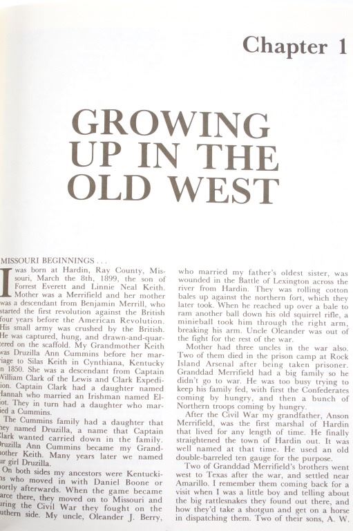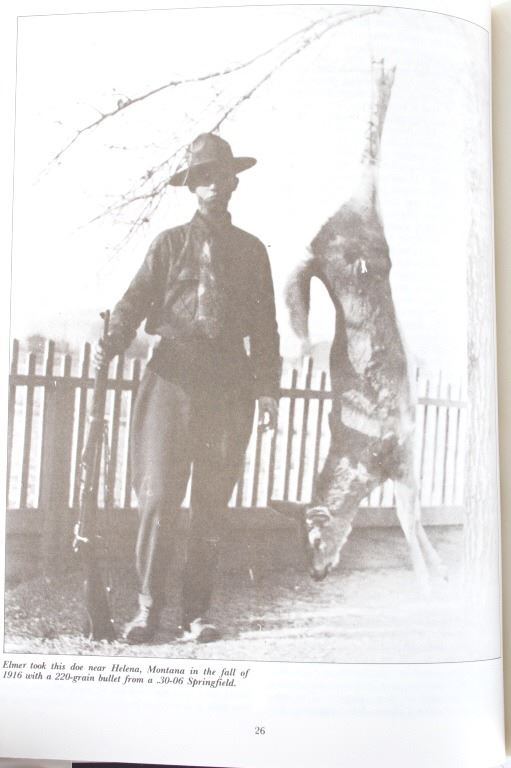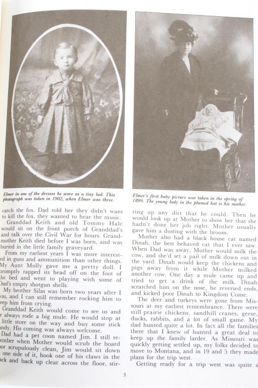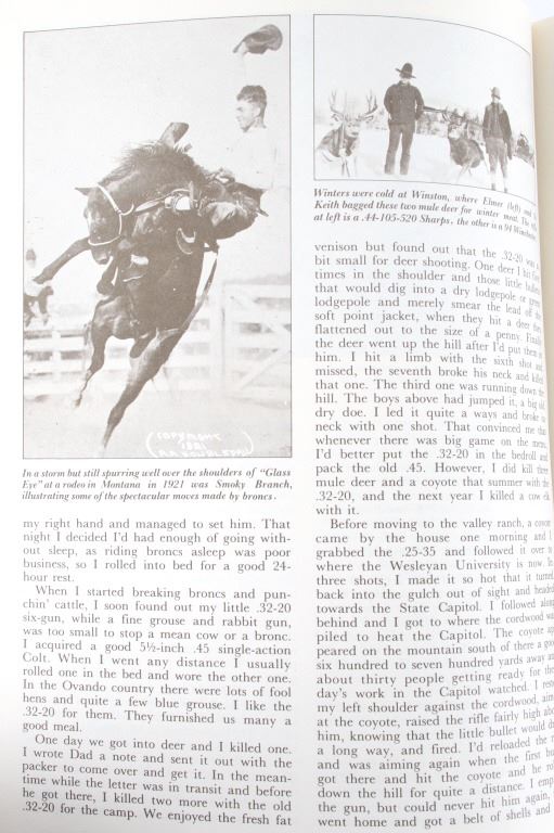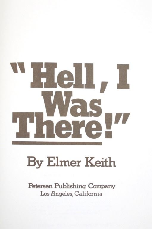 Adventures of a Montana Cowboy who gained world fame as a Big game Hunter and expert in Guns & Ammo where he was Executive editor for the magazine. Offered in this lot is a sixth printing 1989 of the 1979 book Elmer Keith His Life Story: Hell, I Was There" :Adventures of a Montana cowboy who gained world fame as a big game hunter. The book is profusely illustrated with black & white photographs including a section on his African Safari with Truman Fowler when they bagged four huge tuskers and other big game. Elmer Merrifield Keith (1899 –1984) was an American rancher, firearms enthusiast, and author. Keith was instrumental in the development of the first magnum revolver cartridge, the .357 Magnum, as well as the later .44 Magnum and .41 Magnum cartridges, credited by Roy G. Jinks as "the father of big bore handgunning." Elmer Keith was born near Hardin, Missouri, but was raised in Montana, Idaho, and eastern Oregon. The book is bound in brown cloth with a gold embossed spine. The book still has its paper "dust jacket" with minor tears. Leon Parson did the artwork for the dust cover front and back. The book measures 8 3/4" x 11 1/4" x 1". This book is in good condition with minor wear on the corners.