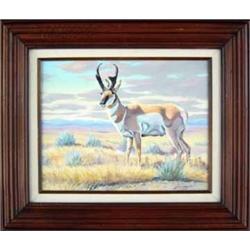 Elmer Sprunger (b.1919) (Montana) Oil on Canvas. "Flatland Antelope." 11" x 14". signed lower right. Est $700 - $1,000.