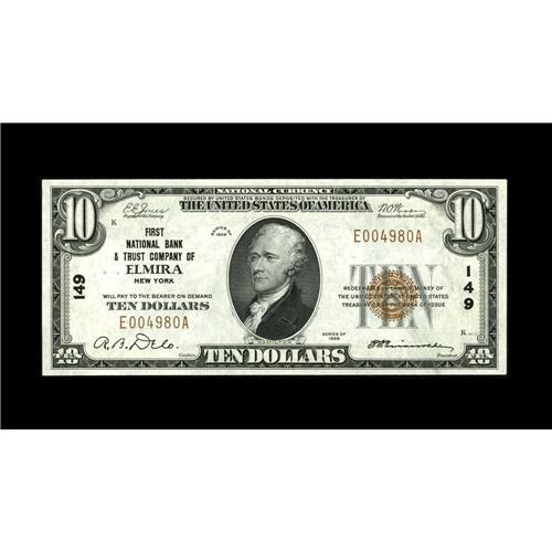 Elmira, NY - $10 1929 Ty. 1 First NB & TC Ch. # 149This
