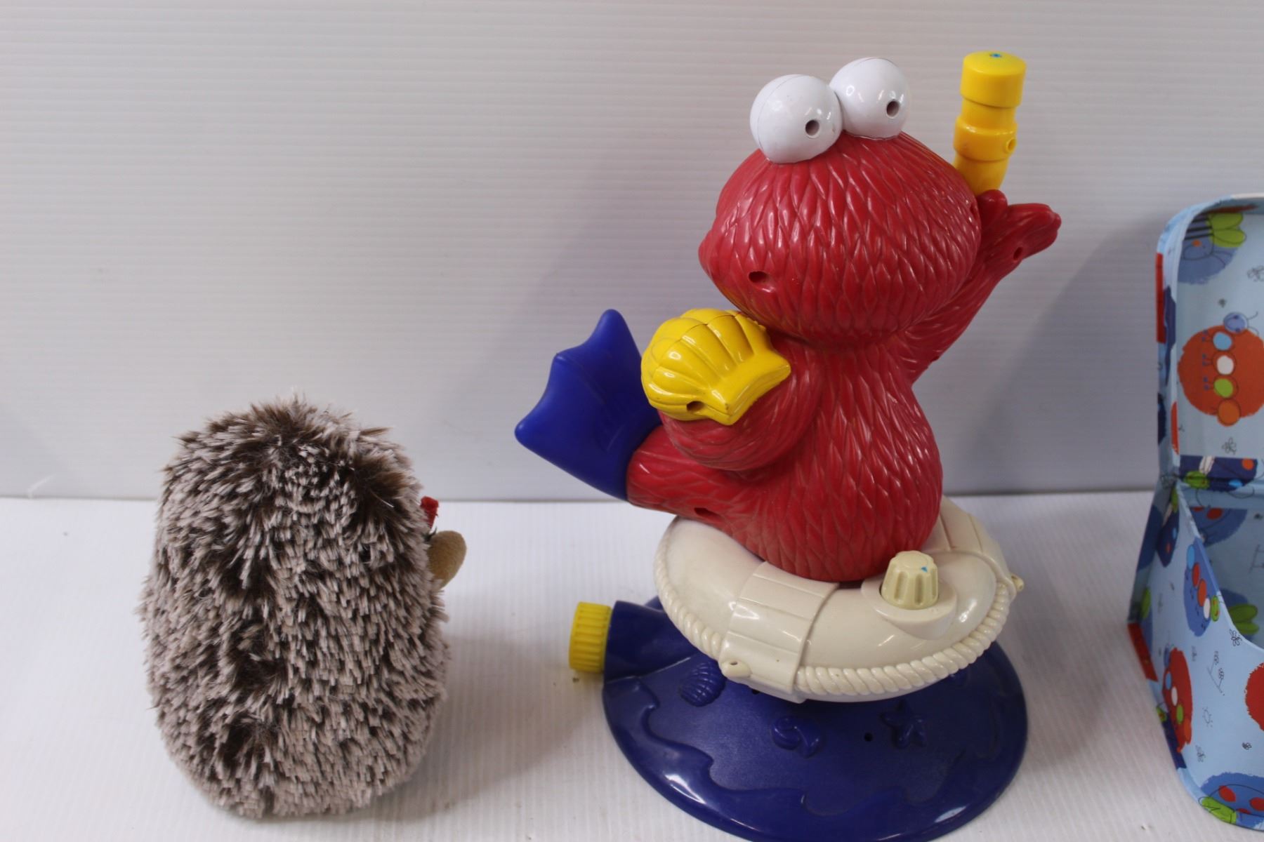 Elmo Sprinkler Toy, Hedgehog Stuffie, Kids Carrying Kit