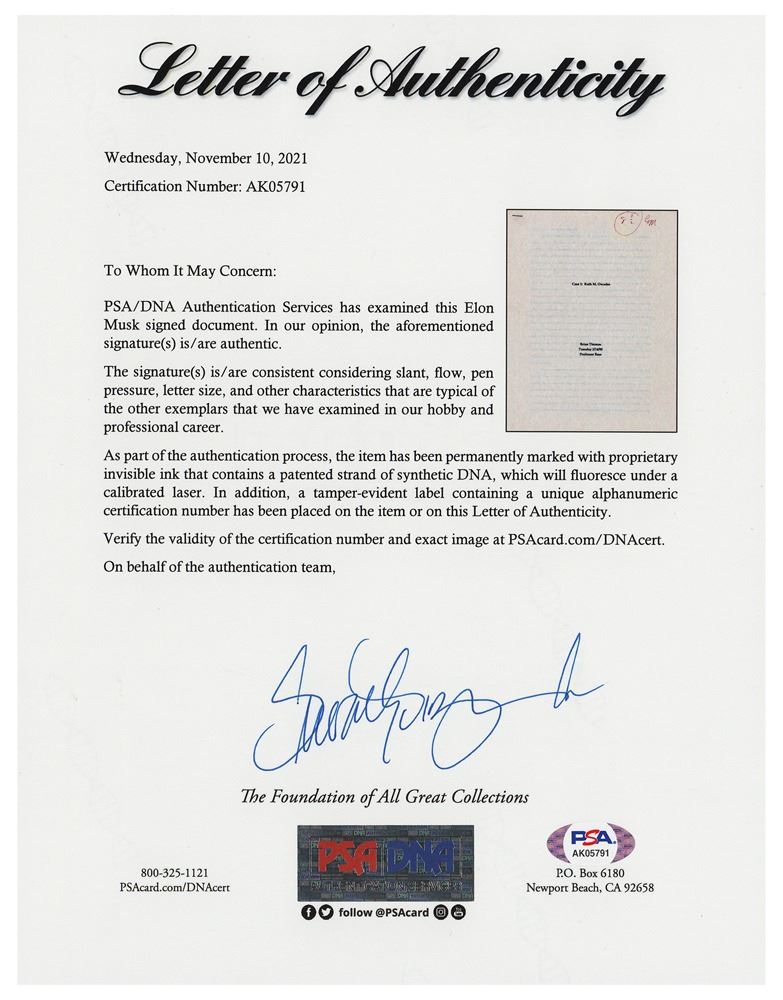 Musk's autograph is rare in any form, and the early date and connection with his alma mater—he graduated from the University of Pennsylvania with degrees in economics and physics in 1997—make this collection truly unique and remarkable.