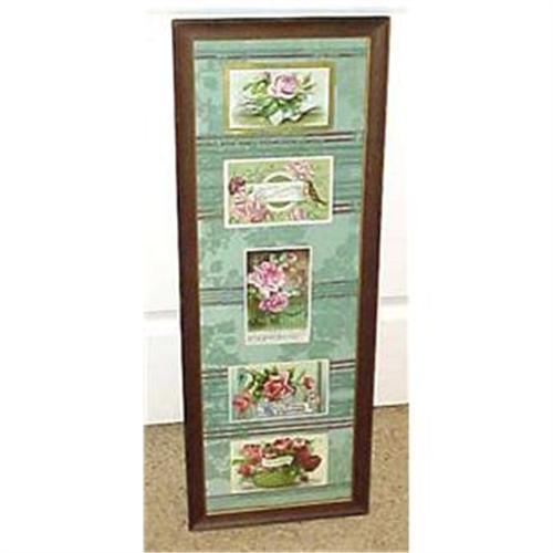 Elongated custom framed collage of vintage pink rose postcards
