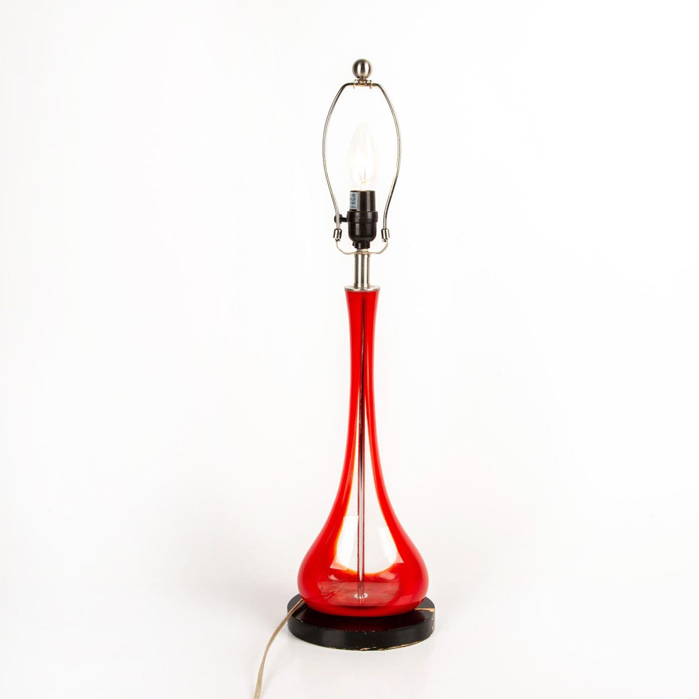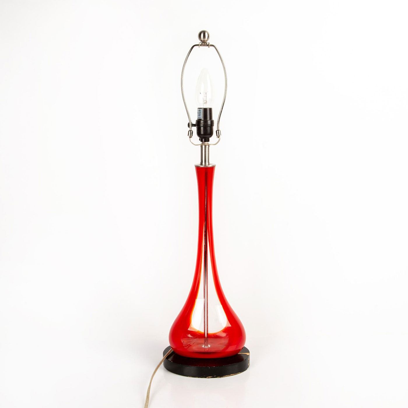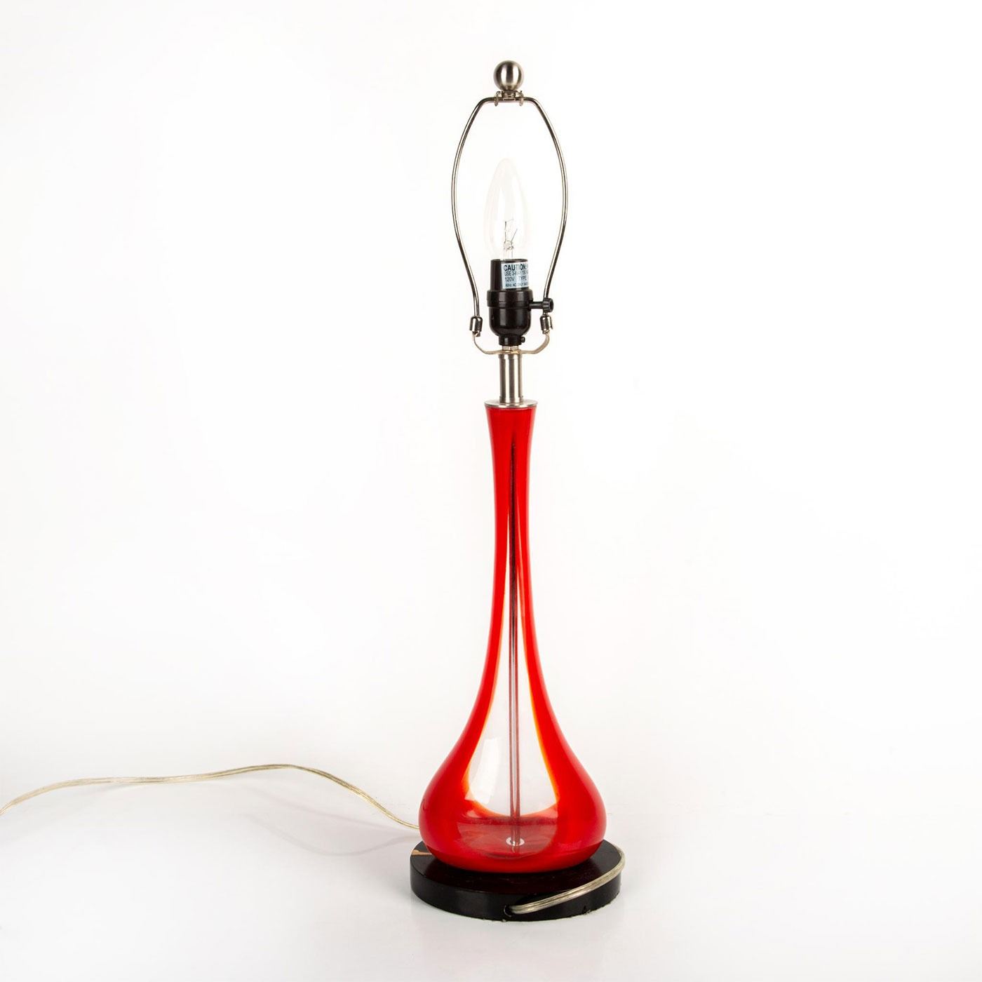 Beautiful, glass blown lamp. Lamp is in working condition but does not include lampshade or bulb.