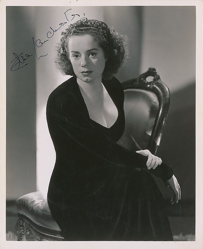 Vintage glossy 8 x 10 Bachrach photo of Lanchester dressed in black, signed in fountain pen. With official Ernest Bachrach stamp on the verso. In fine condition, with some scattered light bends and creases.