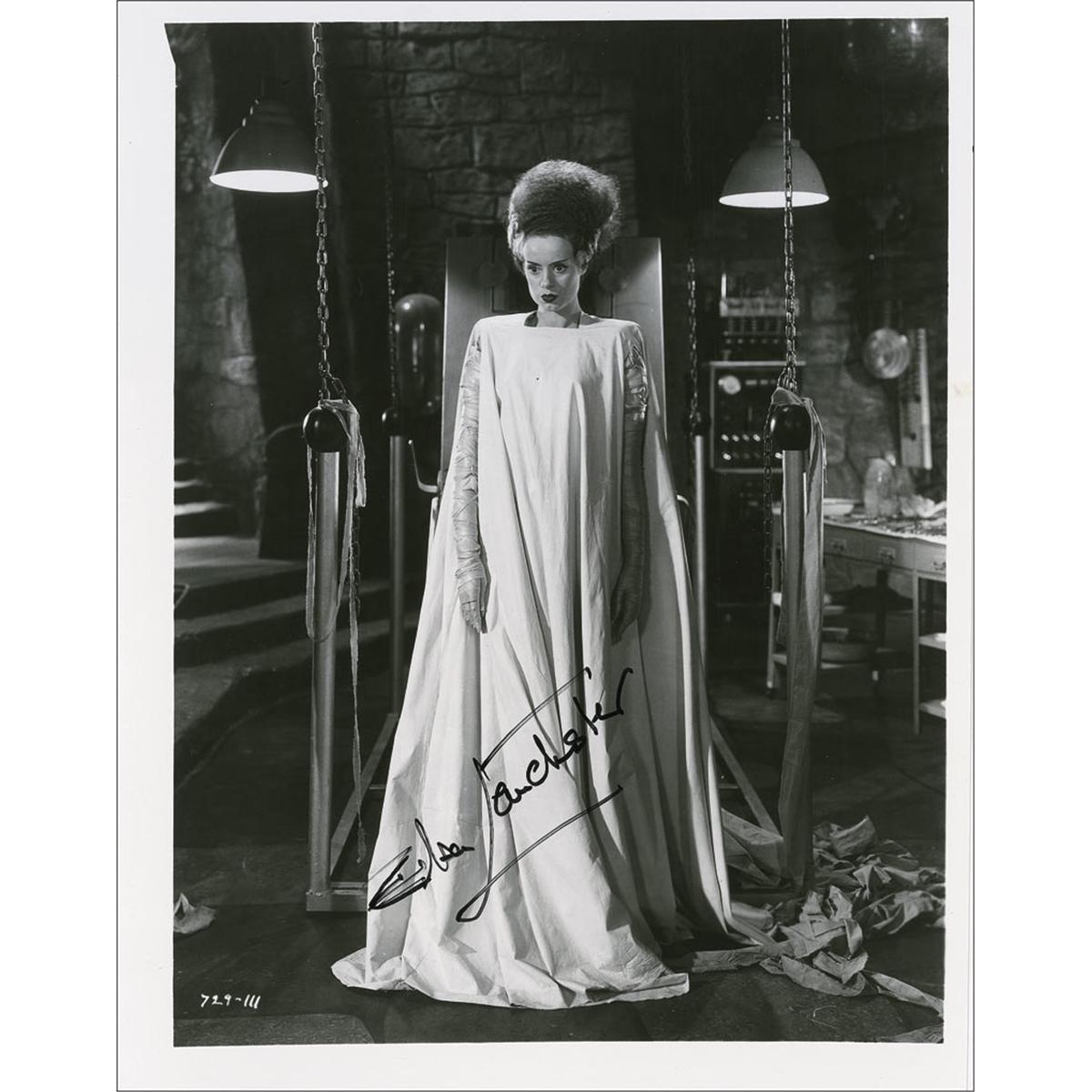 Iconic glossy 8 x 10 full-length photo of Lanchester from The Bride of Frankenstein, signed in black felt tip. In very fine condition.