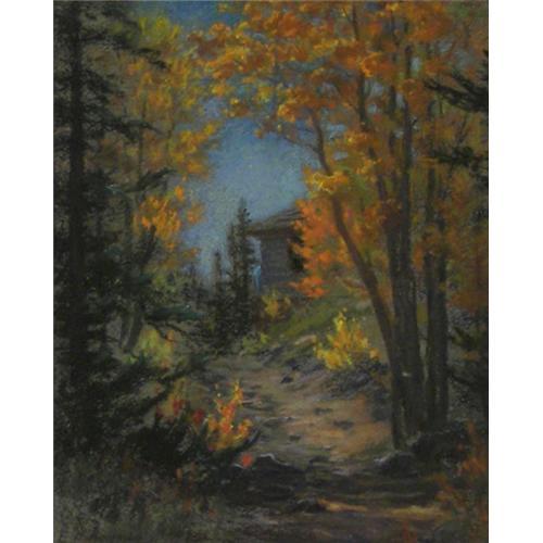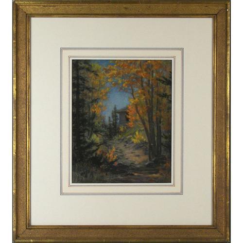 Elsie Haddon Haynes (1881-1963) Pastel, "Estes Park Cabin", sight size 10 3/8" x 8 3/8", signed lower left