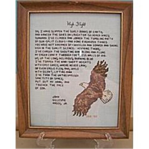 From Elsie, a hand embroidered verse with soaring eagle. The verse is lettered in straight line lettering and the eagle in counted cross stitch. The verse was penned by astronaut John Gillespie McGee, jr. and is beautiful in its' own right. Teamed with this beautiful eagle it is truly breath taking, and we're sure was designed for those who love playing in the clouds...This piece is signed and dated. Order three of anything that can be shipped in one container, pay with PayPal and shipping is FREE!