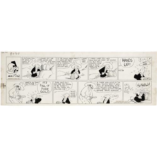 <B>Elzie Segar - Sappo Sunday Comic Strip Topper Original Art, dated 8-24-30 (King Features Syndicate, 1930).</B></I> No collection of original American comic strip art could be considered complete without an example by one of the true comedic geniuses of the art form -- E. C. Segar! This thirties strip was drawn during the prime period of Segar's career. The image area of the Sunday is 20" x 6.5". Aside from light wear and surface soiling, the art is in Very Good condition.<BR><BR><b>Shipping:</b> Large Flat (<a target="_blank" href="http://www.heritageauctions.com/common/shipping.php">view shipping information</a>)