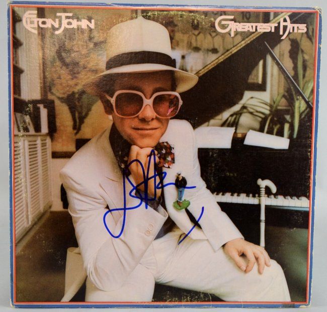 Elton John 'Greatest Hits' Vinyl LP cover signed to front by Elton John Provenance: Signed 2010 in London at the Ivy restaurant