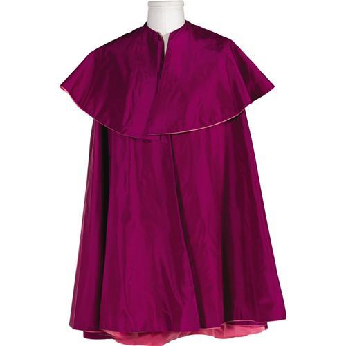 <B>Elton John Stage Worn Cape.</B></I> A head-turning satin cape, part of his famous Bob Mackey matador outfit, magenta with pink lining, worn by Elton John during concert performances circa 1983-84. Measures approximately 65" x 97", and is in Excellent condition with a few small stains. <I>Accompanied by a certificates of authenticity.</B></I><I>From the Robert Johnson Memorabilia Collection.</B></I><BR><BR><b>Shipping:</b> Clothing, Costumes & Jerseys (<a target="_blank" href="http://www.heritageauctions.com/common/shipping.php">view shipping information</a>) <BR><BR><B>Important notic