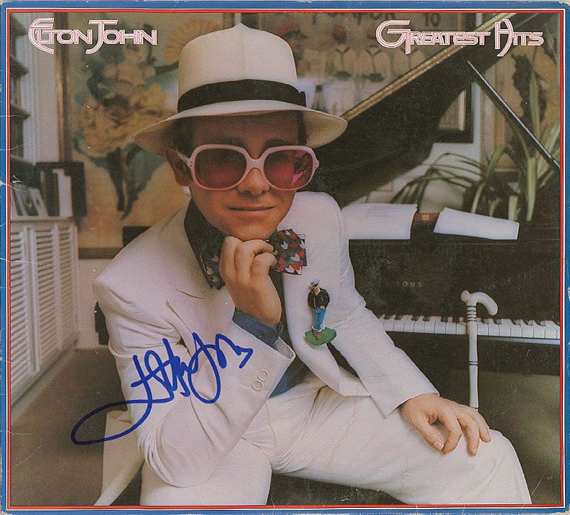 Greatest Hits album signed on the front cover in blue felt tip. In fine condition, with scattered light edge creases. The record is included.