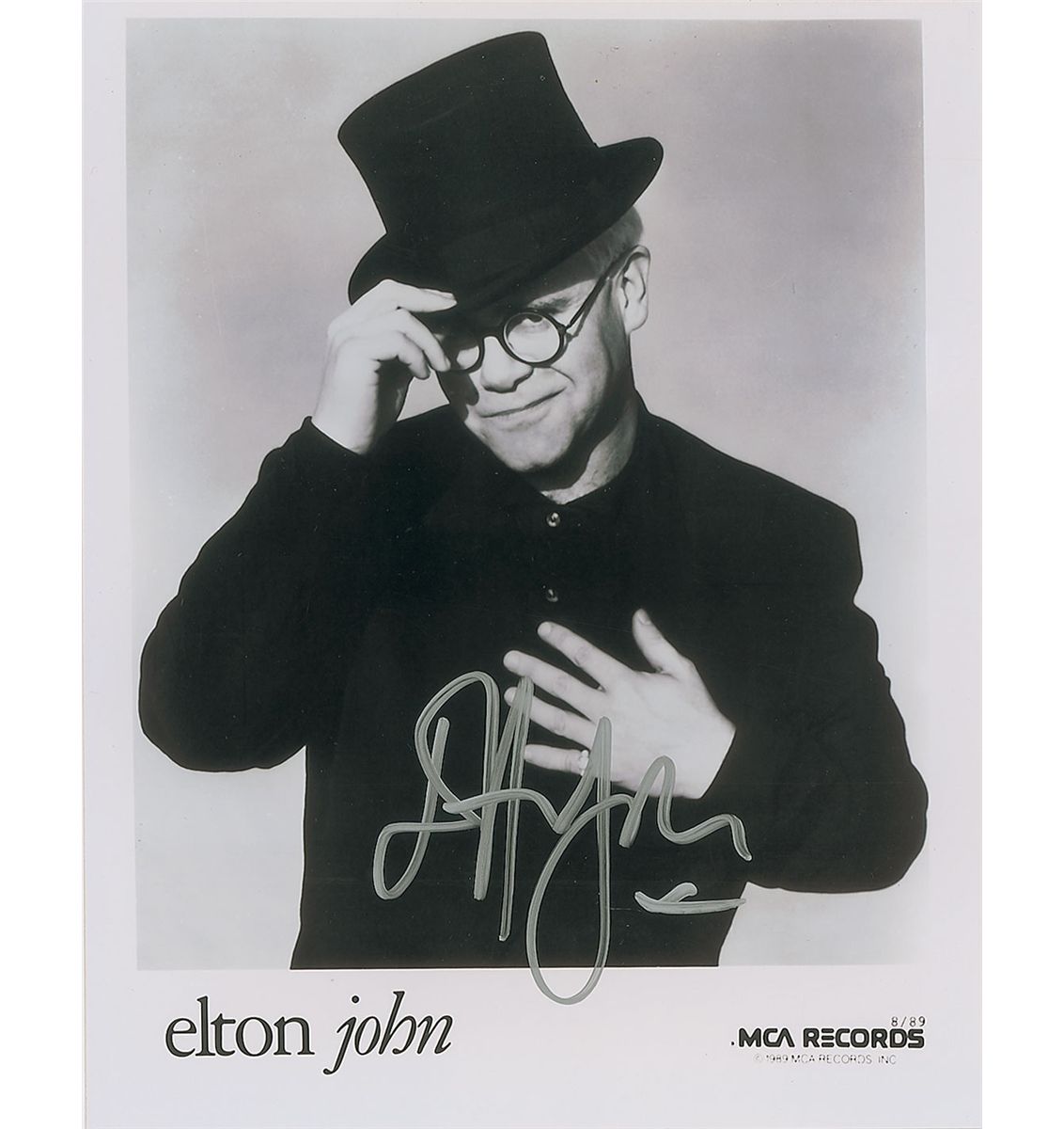 Glossy 8 x 10 MCA publicity photo of John tipping his top hat, signed in silver ink. In very fine condition.