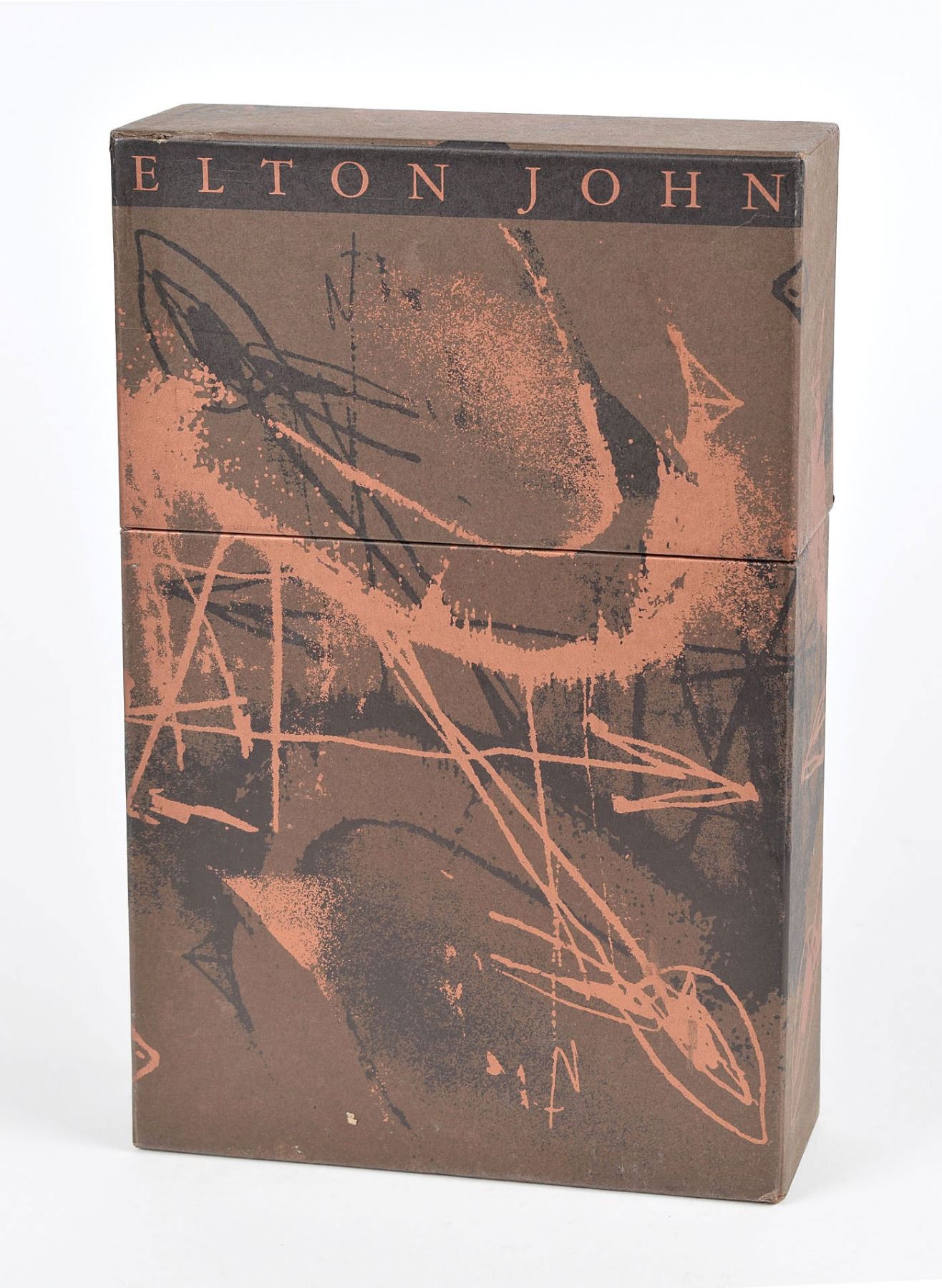 To Be Continued… four-cassette box set, 8 x 12.5 x 2.5, signed on the first page of the booklet in black felt tip, "With love, Elton John." In very fine condition. Includes the four cassette tapes.