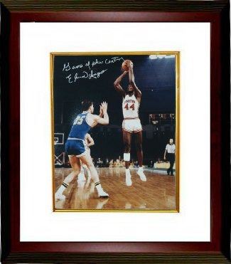 Elvin Hayes joined the NBA with the San Diego Rockets in 1968 and as a rookie, Hayes led the NBA in scoring with 28.4 points per game, averaged 17.1 rebounds per game, and was named to the NBA All-Rookie Team. Hayes' scoring average is the fifth best all-time for a rookie, and he remains the last rookie to lead the NBA in scoring average. On January 20, 1968, the Big E and the Houston Cougars faced Lew and the UCLA Bruins in the first-ever nationally televised regular season college basketball game. In front of a record 52,693 fans at the Houston Astrodome, Hayes scored 39 points and had 15 rebounds while limiting Alcindor to just 15 points as Houston beat UCLA 71–69 to snap the Bruins' 47-game winning streak in what has been called the "Game of the Century". That game helped Hayes earn The Sporting News College Basketball Player of the Year. Elvin Hayes has hand autographed this Houston Cougars 16X20 Photo vs UCLA in the Game of the Century with Game of the Century inscription. Schwartz Sports Hologram and Certificate of Authenticity from Athlon Sports. Custom White Mat and Premium Mahogany Frame as shown.