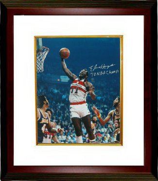 Elvin Hayes led the Washington Bullets to 3 NBA Finals (1975, 1978, and 1979), and an NBA title over The Seattle SuperSonics in 1978. He shined brightly, especially in the NBA playoffs. During the Bullets' championship season (1978), he averaged 21.8 points and 12.1 rebounds per game in 21 playoff games. Elvin Hayes has hand autographed this Washington Bullets 16x20 Photo with 78 NBA Champs. Schwartz Sports Hologram and Certificate of Authenticity from Athlon Sports. Custom White Mat and Premium Mahogany Frame as shown.