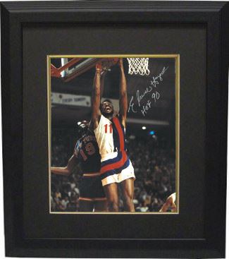 Elvin Hayes led the Washington Bullets to 3 NBA Finals (1975, 1978, and 1979), and an NBA title over The Seattle SuperSonics in 1978. He shined brightly, especially in the NBA playoffs. During the Bullets' championship season (1978), he averaged 21.8 points and 12.1 rebounds per game in 21 playoff games. Elvin Hayes has hand autographed this Washington Bullets 16x20 Photo with HOF 90 inscription. Leaf Authentics Hologram and Certificate of Authenticity from Athlon Sports. Custom Black Mat and Premium Black Color Framed as shown.