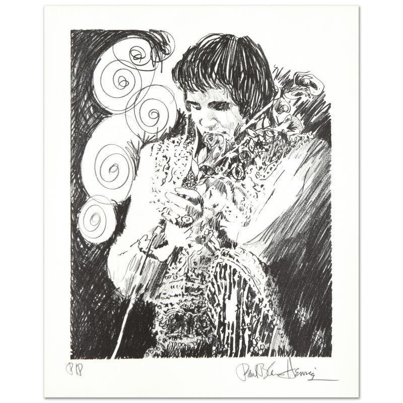 "Elvis (Holding Mic)" is a limited edition serigraph on paper from a PP edition and hand signed by Paul Blaine Henrie (1932-1999)! Includes Certificate of Authenticity! Measures approx. 26" x 20" (border), 12.5" x 17" (image). Retail Price $2500.00. PRICE INCUDES FREE SHIPPING IN THE U.S. - SHIPPING WILL BE ADDED TO YOUR INVOICE FOR ALL BUYERS OUTSIDE OF THE U.S.