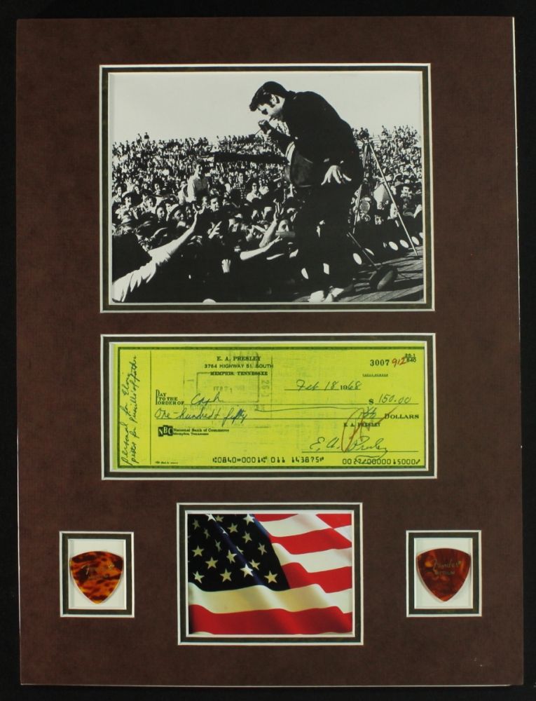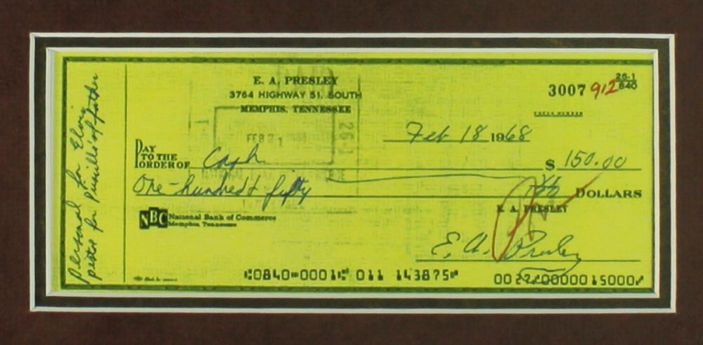 Custom matted piece which measures 12x16 in size. The signed check is a copy of an original for presentation purposes. This piece is not hand-signed.