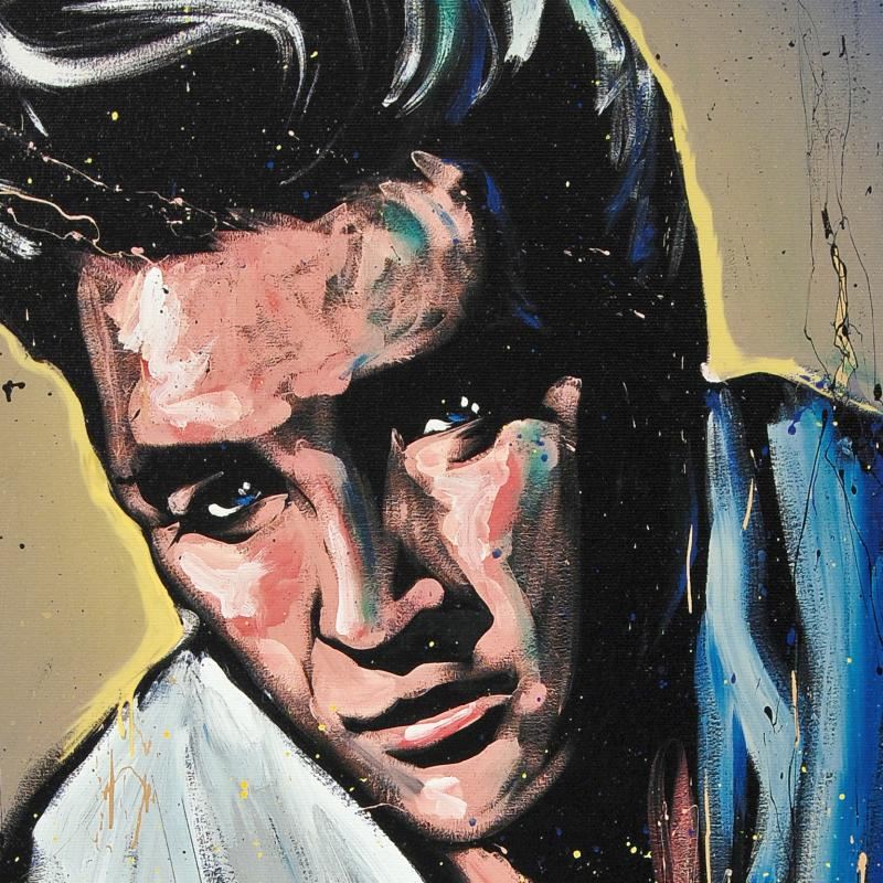 Combining his passions for music and art, David Garibaldi creates stunning visual poetry. "Elvis Presley (Blue Suede)" is a limited edition giclee on stretched canvas, numbered from the miniature series and bearing the artist's authorized signature. This piece is gallery wrapped and ready to hang. Includes Certificate of Authenticity! Measures approx. 12" x 18" (image).