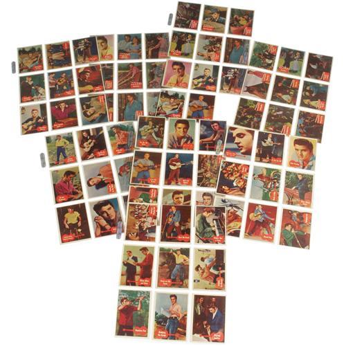 <B>Elvis Presley Bubblegum Cards Set.</B></I> A complete 66-card set of Elvis bubblegum cards from 1956, plus eight duplicate cards, in Very Fine condition in card album storage sleeves.<BR><BR><b>Shipping:</b> Flat Material, Small (<a target="_blank" href="http://www.heritageauctions.com/common/shipping.php">view shipping information</a>)