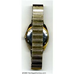 Elvis Presley - Commissioned Gold Watch (Mathey-Tissot, circa 1970). In 1969 or 1970, Elvis had a Memphis jeweler, Harry Levitch, customize premium Swiss-made watches, which the King gave to family, close friends, selected staff, band members, and other privileged sorts, identifying the wearer as one with "all access" status at Elvis' concerts and tours. Mr. Levitch crafted a bezel with Elvis Presley in raised circular letters. Mathey-Tissot's "Automatic" model is self-winding, water-resistant, has a sweeping second hand and day/date display, with a stainless steel underside and an adjustable wrist band. This beautiful, significant artifact comes with a letter of authenticity from Jerry Osborne of Osborne Enterprises, author of Presleyana--The Elvis Presley Record, CD, and Memorabilia Price Guide, and other respected price guides that are utilized extensively by recording collectors and dealers worldwide. ***** Important notice: Heritage usually auctions material at the rate of 200-250 lots per hour. On some occasions eBay Live bid software or the Internet may not be able to keep up with the pace of the auction. We recommend placing a realistic absentee bid now as insurance to avoid disappointment. Occasionally the auctioneer may eliminate or reject an eBay Live bid, and the auctioneer may also reopen a lot after the close of the eBay live bidding (usually because we missed an audience bid), and may reject your bid even if it shows you as the winning bidder. By bidding via eBay Live, you agree that Heritage may award the lot to another bidder at its sole discretion under the circumstances described above or any other reasonable circumstances. Also please note that all Heritage lots purchased through eBay Live carry a 20% Buyer's Premium. Please make sure you read the Terms and Conditions before you bid.