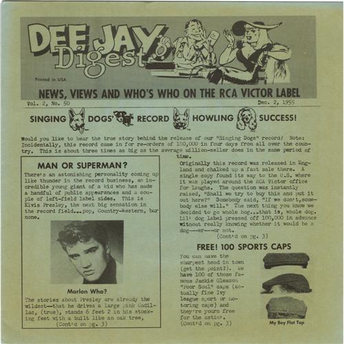 <B>Elvis Presley Concert Ticket and RCA Newsletter.</B></I> Concert ticket for Saturday, March 25, 1961, at the Bloch Arena in Pearl Harbor, Hawaii. Newsletter from the RCA Victor label, Vol. 2 No. 5, December 2, 1955. Condition for both items: NM 8. <I>From the GRT Collection.</B></I><BR><BR><b>Shipping:</b> Flat Material, Small (<a target="_blank" href="http://www.heritageauctions.com/common/shipping.php">view shipping information</a>)