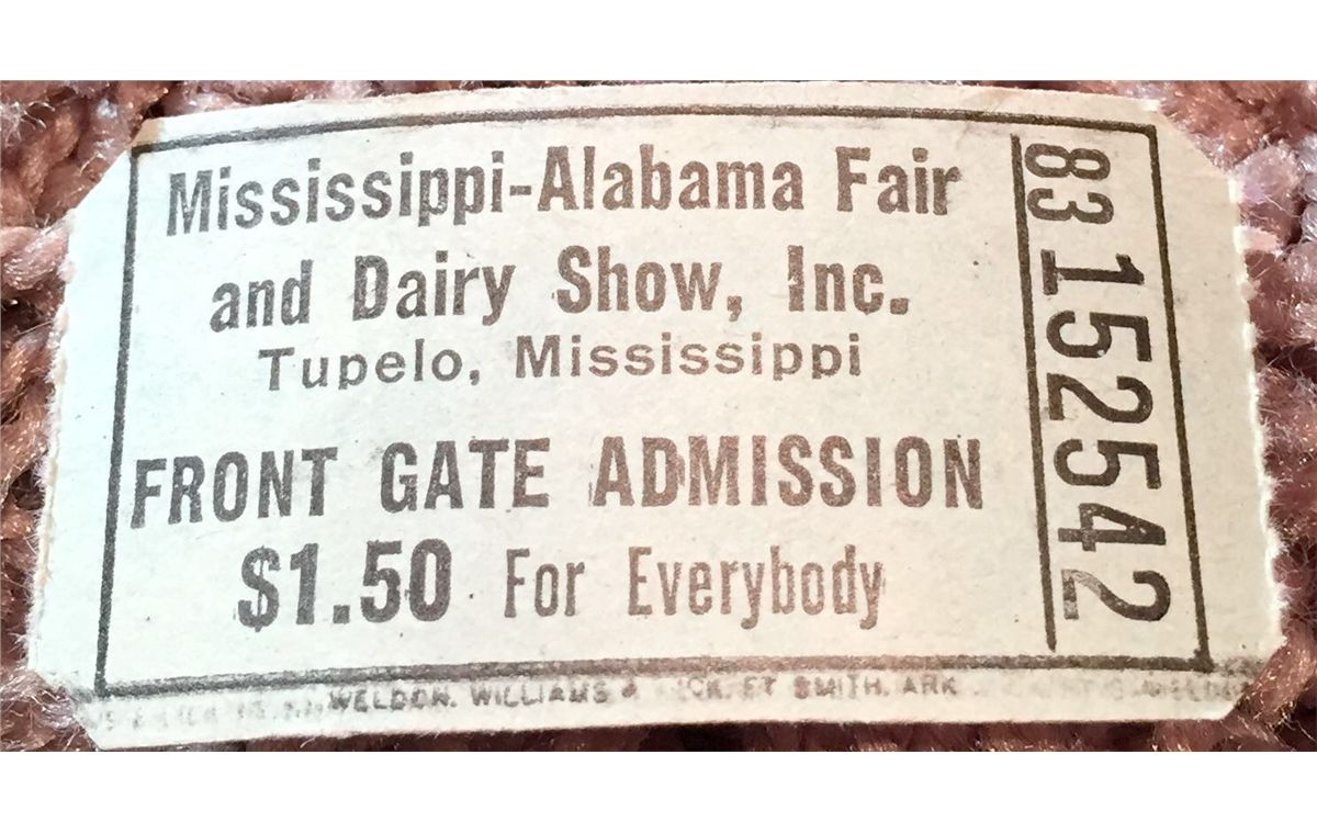 Elvis Presley Concert Ticket from his appearance at the Mississippi-Alabama Fair, considered to be his "homecoming" show