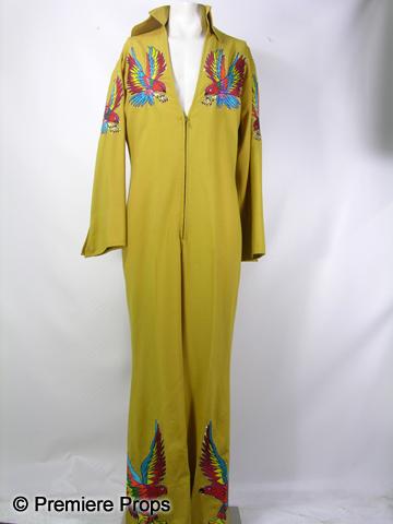 Elvis Presley's Custom Designed Nudie Jumpsuit (c. 1970's) - Few entertainers have ever achieved the status of Elvis. Known throughout the world as "The King," Presley is revered by millions of fans spanning many generations. Perhaps more than any other entertainer, Presley became known for his stage attire in the last decade of his career. His outrageous, flamboyant jumpsuits have been parodied, coveted and sought after the world over. Offered here is a Dijon yellow custom jumpsuit associated with Elvis during the early 1970's. Created by Elvis' longtime friend and personal designer Nudie Cohen, this elaborate suit features an array of colorful Eagle embroideries on the front shoulders, back and at the ankles., outlined by glimmering rhinestone beads. The inside lining of the jumpsuit bears two sewn-in tags, one being an official Nudie's of Hollywood label and the other an identification tag that reads, "Name: Elvis Presley." Acquired from Nudie's store in Hollywood shortly after his passing. Presley jumpsuits, on the rare occasions they come to market, sell for $60,000 and up. A rare opportunity to acquire a museum quality piece of not just Rock and Roll history, but of American pop culture at its best. (SDJ1003)